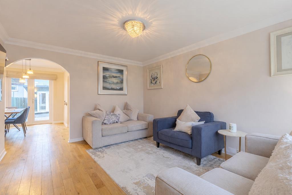 A beautifully presented three-bedroom semi-detached villa offering bright, well-balanced accommodation arranged over two levels, complemented by attractive outdoor space and a generous driveway, set within a popular residential area of Robroyston.