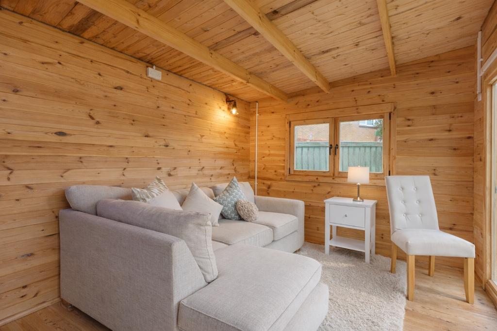 Externally, the home benefits from a generous rear garden featuring a spacious powered summerhouse, ideal for use as a home office, gym or additional leisure space. To the front, a large driveway provides ample off-street parking.