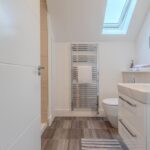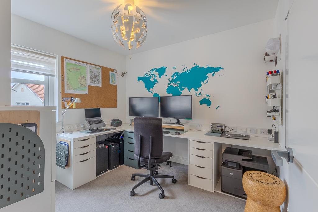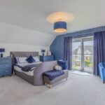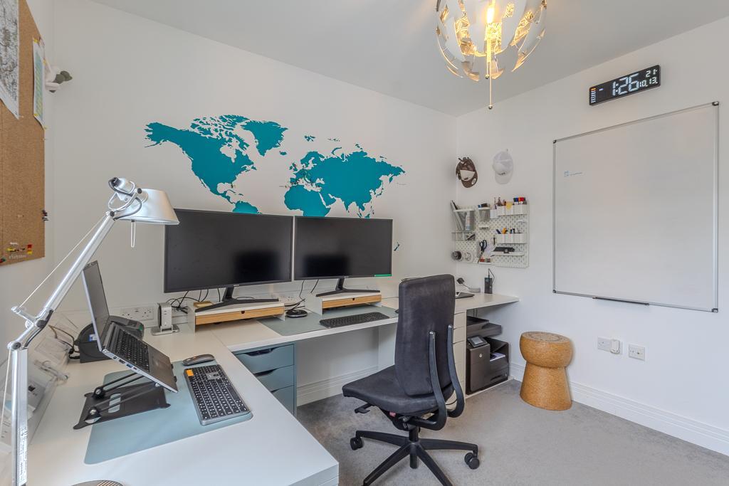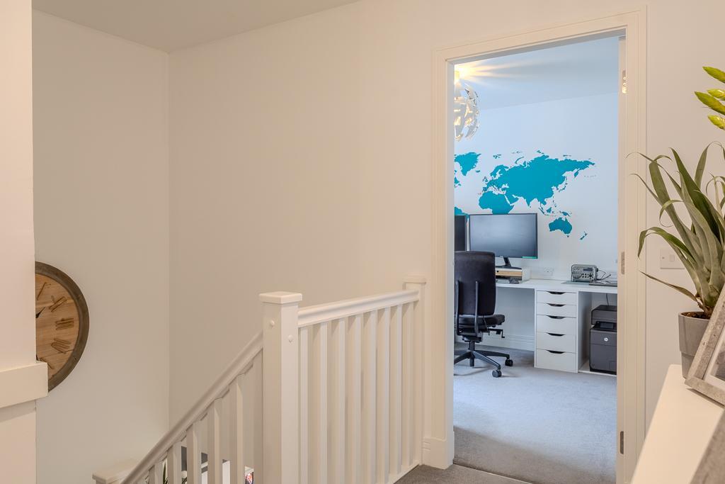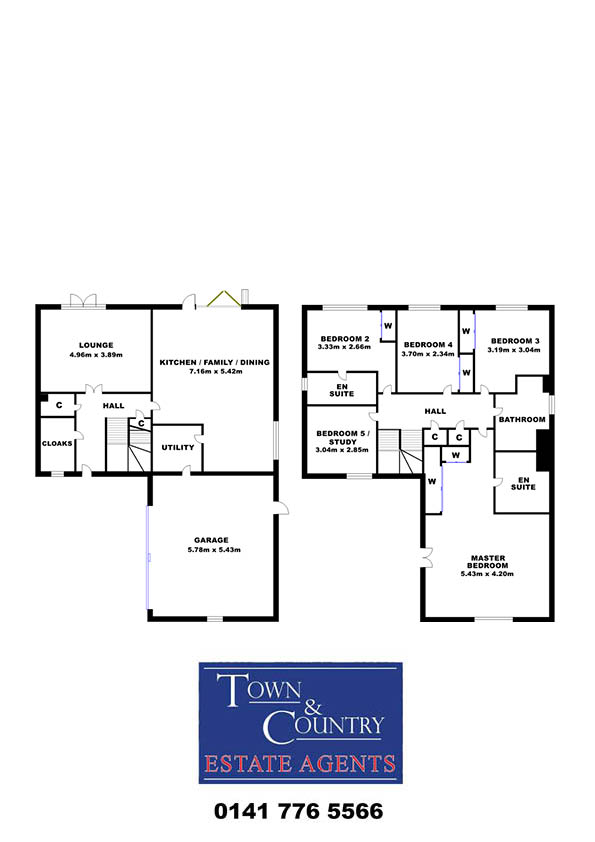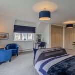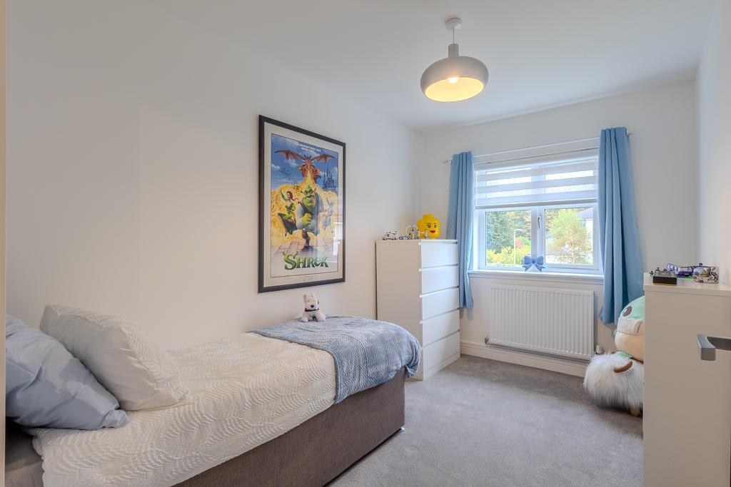 Upstairs, there are five well-proportioned bedrooms offering flexibility for family life. The principal suite is particularly impressive, with fitted wardrobes and a luxurious en suite shower room. The second bedroom also benefits from an en suite, while the remaining bedrooms are served by a stylish family bathroom featuring a four-piece suite including a separate bath and shower enclosure.