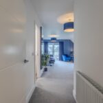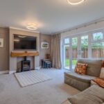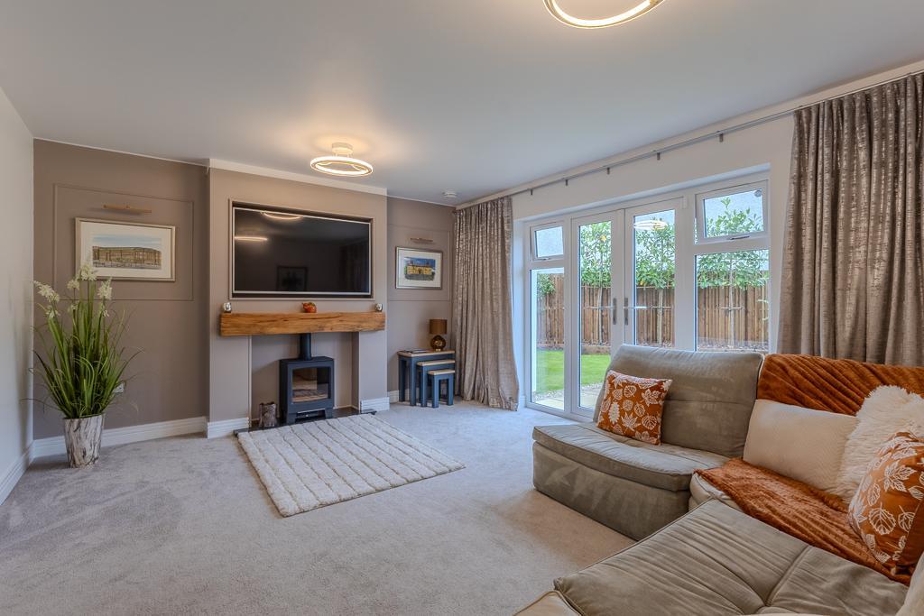 The accommodation begins with a welcoming entrance hallway, setting an elegant tone for the home. To the rear, a bright and spacious formal lounge provides a relaxing retreat, featuring patio doors that open directly onto the sun-drenched south-facing garden.