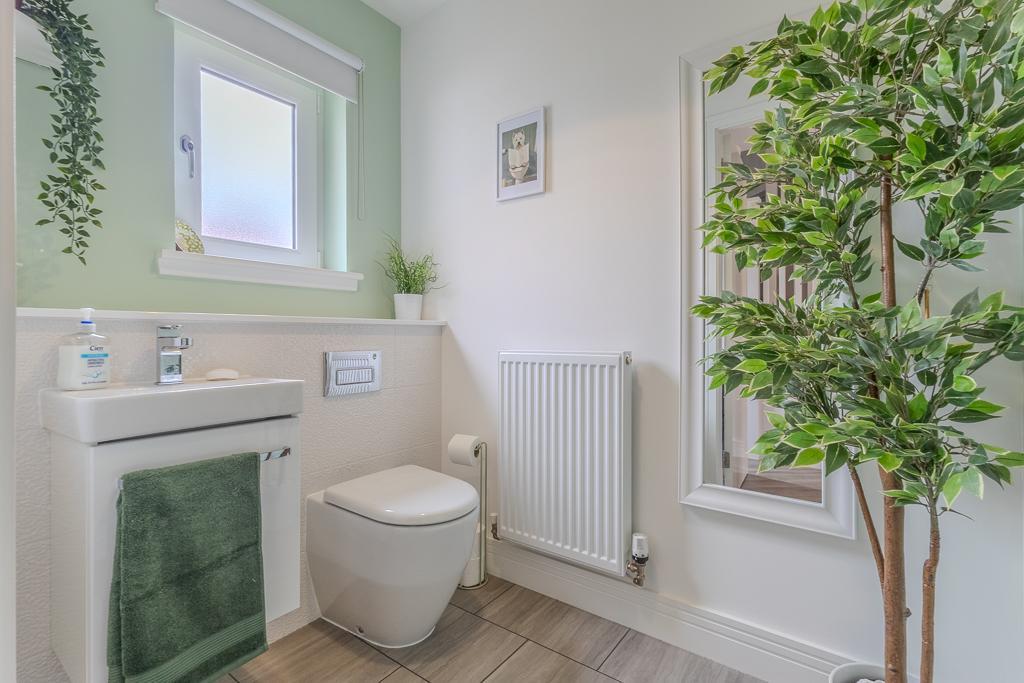 A separate utility room, guest cloakroom/WC, and two generous storage cupboards add to the practicality of the ground floor, while the integral garage provides excellent additional storage or secure parking.