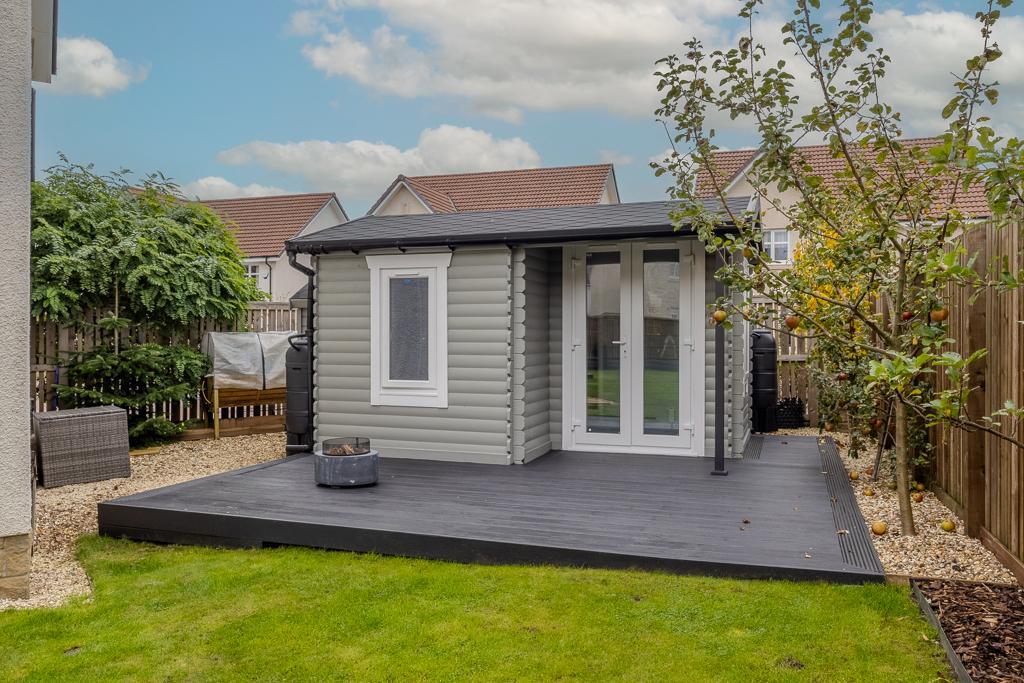 Externally, the home is complemented by a superb south-facing rear garden, beautifully landscaped and fully enclosed for privacy. The outdoor space includes areas of lawn, patio, and paving; a powered summer house currently utilised as a home gym and a bespoke BBQ area perfect for entertaining. A large monobloc driveway to the front provides ample off-street parking.