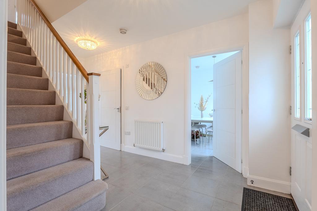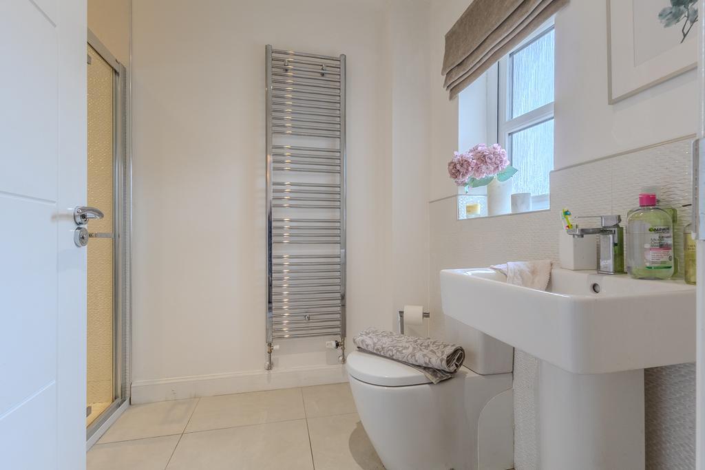 The upper level hosts four well-proportioned bedrooms, all benefiting from excellent storage. The principal bedroom and second bedroom each enjoy the luxury of their own en-suite shower rooms, while the remaining bedrooms are served by a stunning family bathroom fitted with a stylish four-piece suite including a separate bath and shower enclosure.