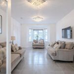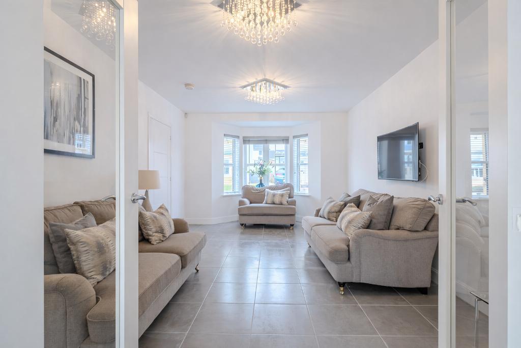 The property is entered via a welcoming reception hallway which sets the tone for the generous proportions throughout the home. To the front, a spacious and naturally bright lounge enjoys a striking bay window formation, creating an elegant and comfortable setting for relaxation.