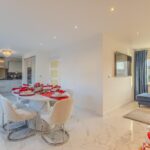 To the rear lies the true heart of the home: a breathtaking open-plan kitchen, dining and family room, thoughtfully extended through a high-quality garage conversion. This impressive space features a sleek grey contemporary kitchen, complemented by premium integrated appliances, generous work surfaces and ample room for dining and family living. Flooded with natural light and offering seamless access to the garden, it provides an ideal setting for both everyday living and entertaining.