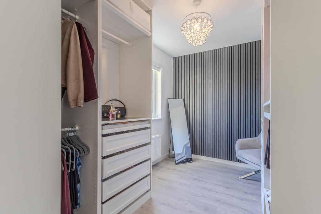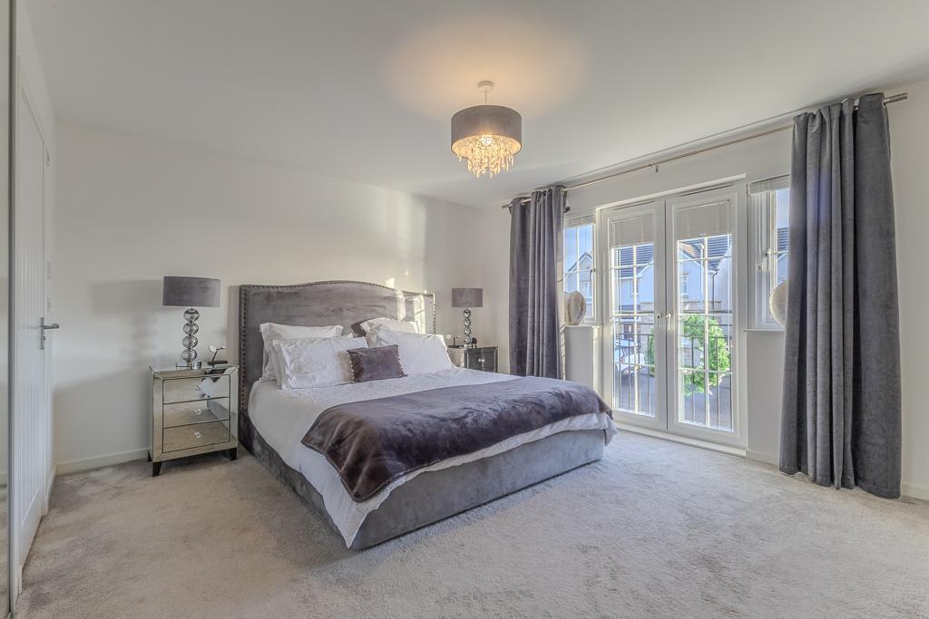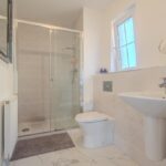 Ascending to the upper level, the property continues to impress. The principal bedroom is a luxurious sanctuary, complete with fitted wardrobes and full-length balcony doors, creating an airy, elegant atmosphere. A stylish ensuite shower room serves the principal suite, while three further well-proportioned bedrooms offer excellent flexibility. The family bathroom enjoys beautiful tiling and a contemporary three-piece suite.