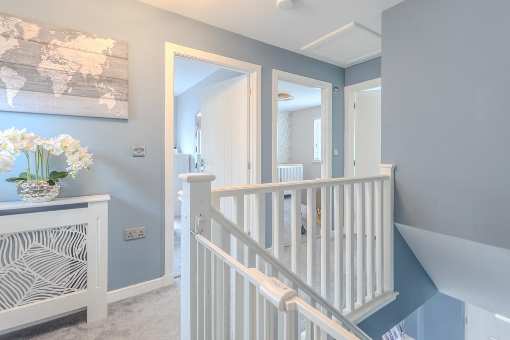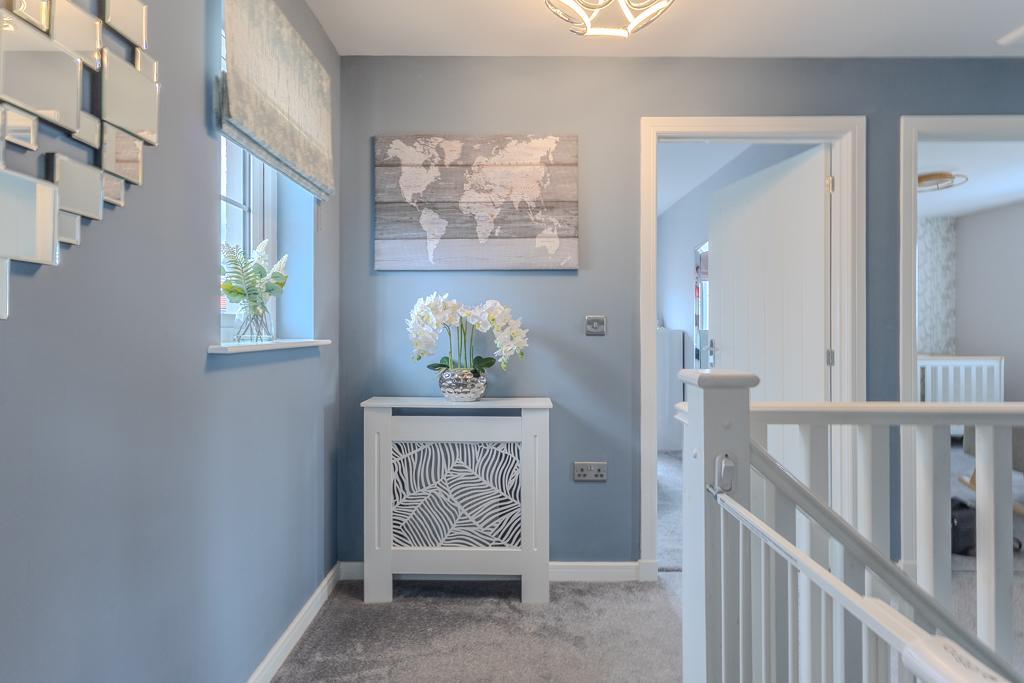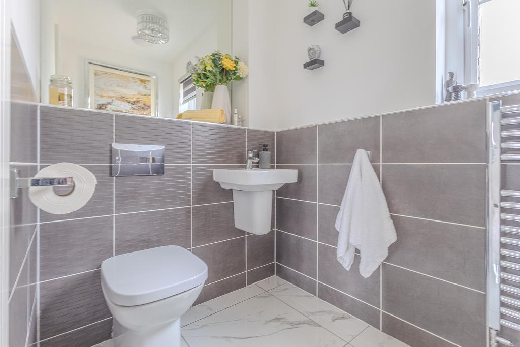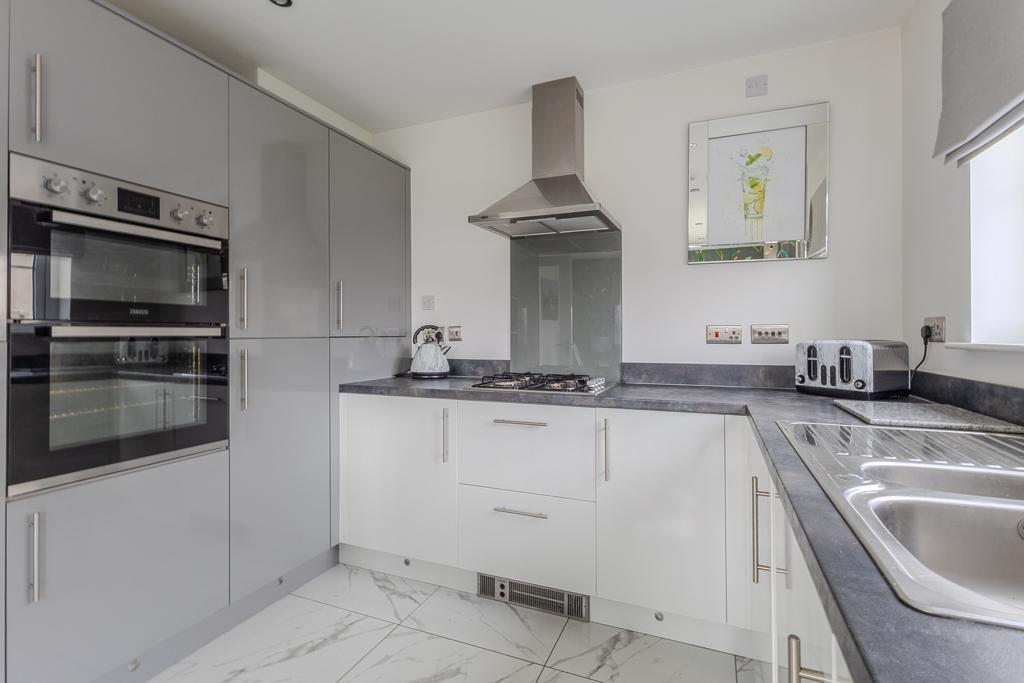 Upstairs, the property offers three well-proportioned bedrooms, including a principal suite with fitted storage and a stylish en suite shower room. A modern family bathroom with a three-piece suite serves the remaining bedrooms.