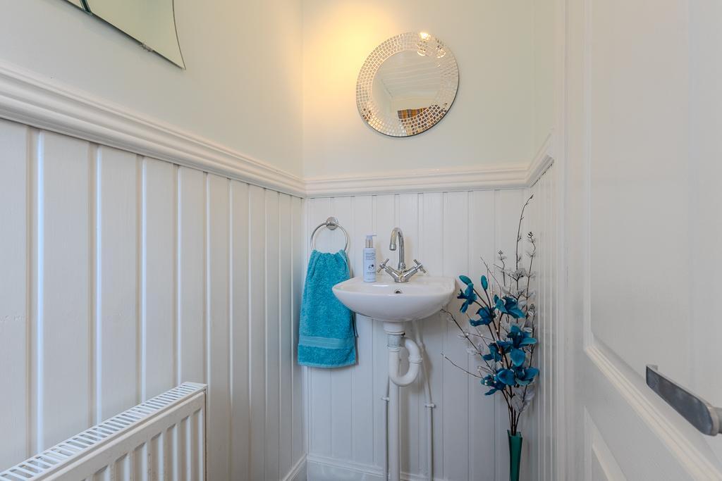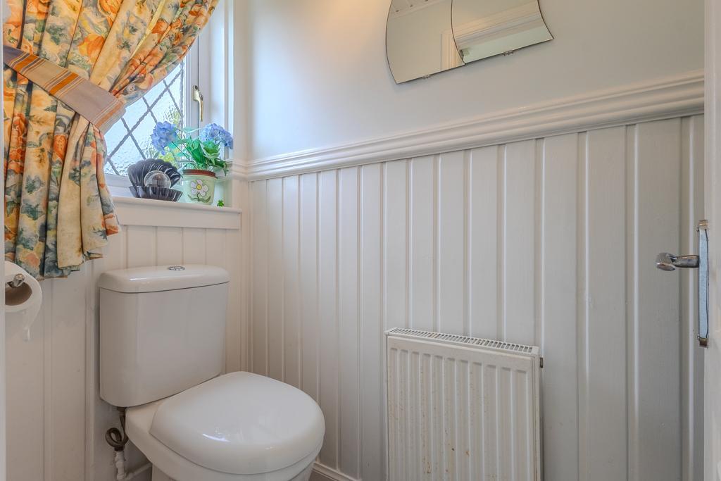 The ground floor is arranged around a bright, open-plan lounge that flows seamlessly into the contemporary, fully fitted kitchen and dining area. French doors open directly onto the rear garden, creating an ideal setting for entertaining and family gatherings. A convenient downstairs WC completes the ground level.