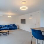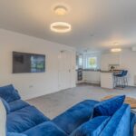 Upon entering, a welcoming reception hallway sets the tone for the quality of finish on offer and provides access to all principal rooms. The heart of the home is the impressive open-plan lounge, dining, and kitchen area a bright and airy space perfectly designed for modern living. The newly installed kitchen features contemporary cabinetry, integrated appliances, and ample worktop space, all finished with a sleek, modern aesthetic.