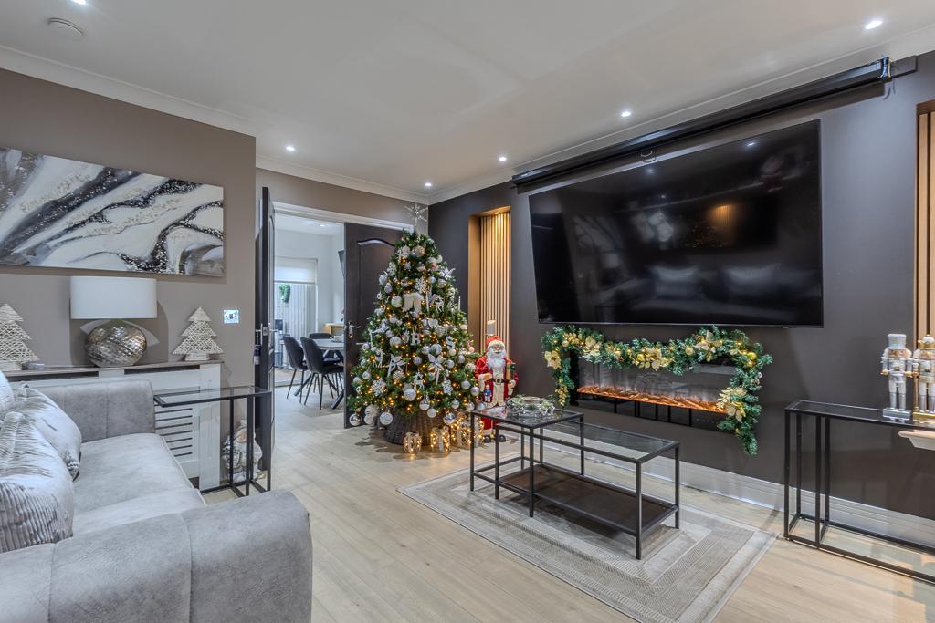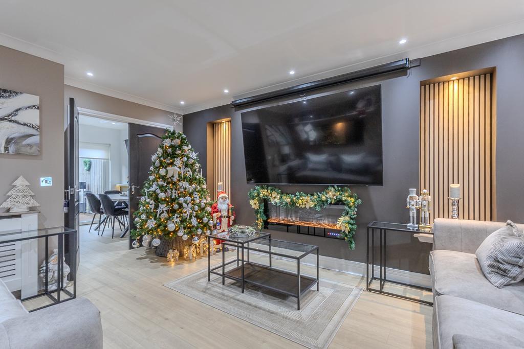The property is further enhanced by gas central heating, double-glazed window units, an electric vehicle charging point, and hardwired security cameras positioned to the front, side and rear for added peace of mind. A private driveway provides off-street parking, while externally the home occupies a generous end plot with spacious, enclosed rear gardens ideal for families, outdoor entertaining and recreation.