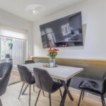 The ground floor accommodation begins with a welcoming entrance hallway, leading to a convenient cloakroom/WC. The spacious lounge offers a comfortable and inviting living space and flows through double doors into the fitted kitchen and breakfast area, which features a built-in oven, integrated induction hob, built-in microwave oven, and ample storage. Patio doors from the kitchen open directly onto the enclosed rear garden, creating a seamless connection between indoor and outdoor living.