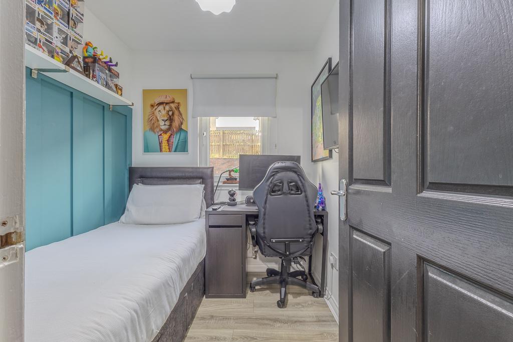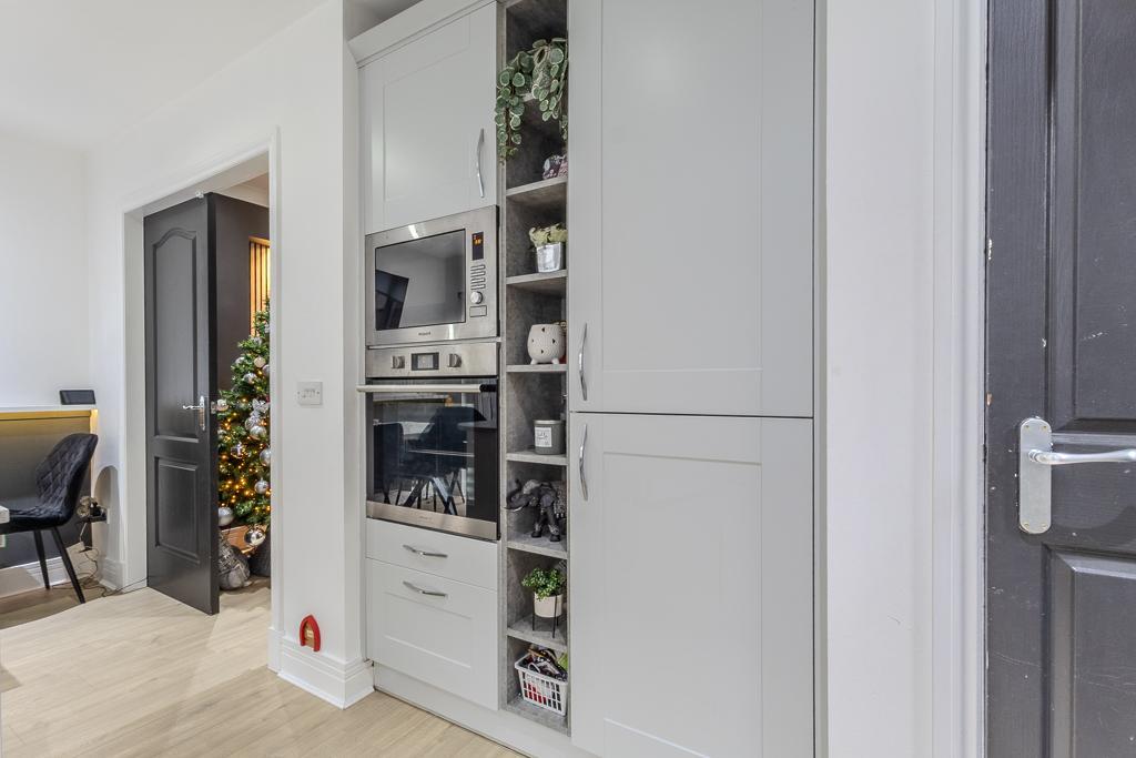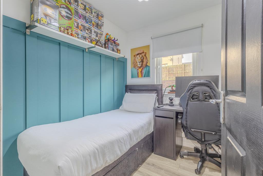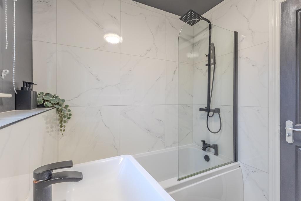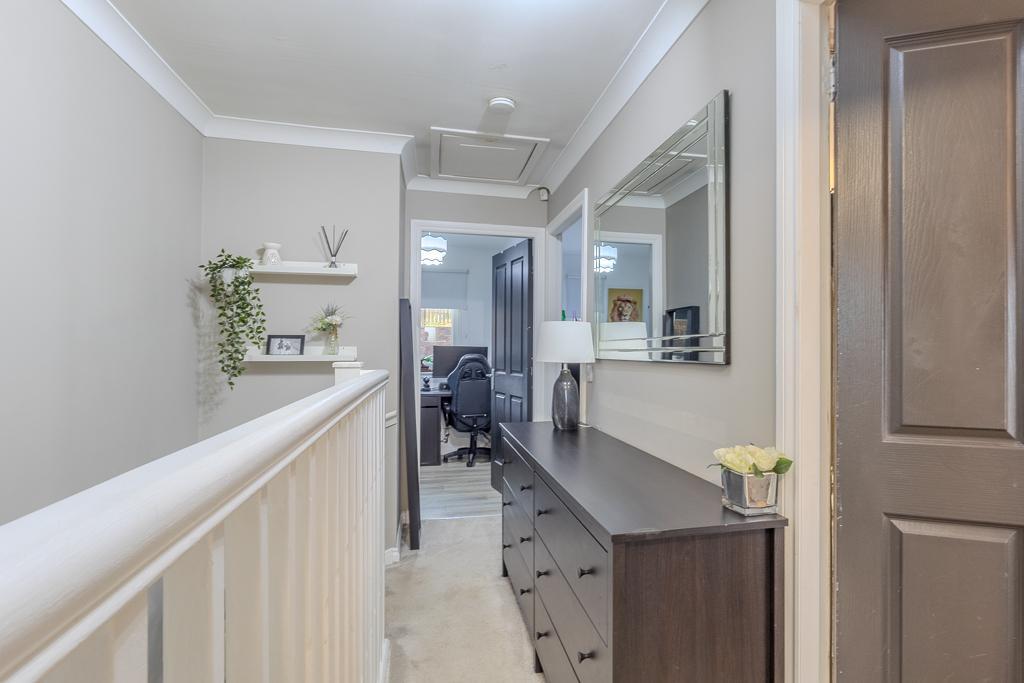 On the upper level, there are three well-proportioned bedrooms, all benefiting from integrated wardrobe storage. The principal bedroom enjoys the additional luxury of an en-suite shower room, while a modern family bathroom fitted with a three-piece white suite serves the remaining bedrooms.