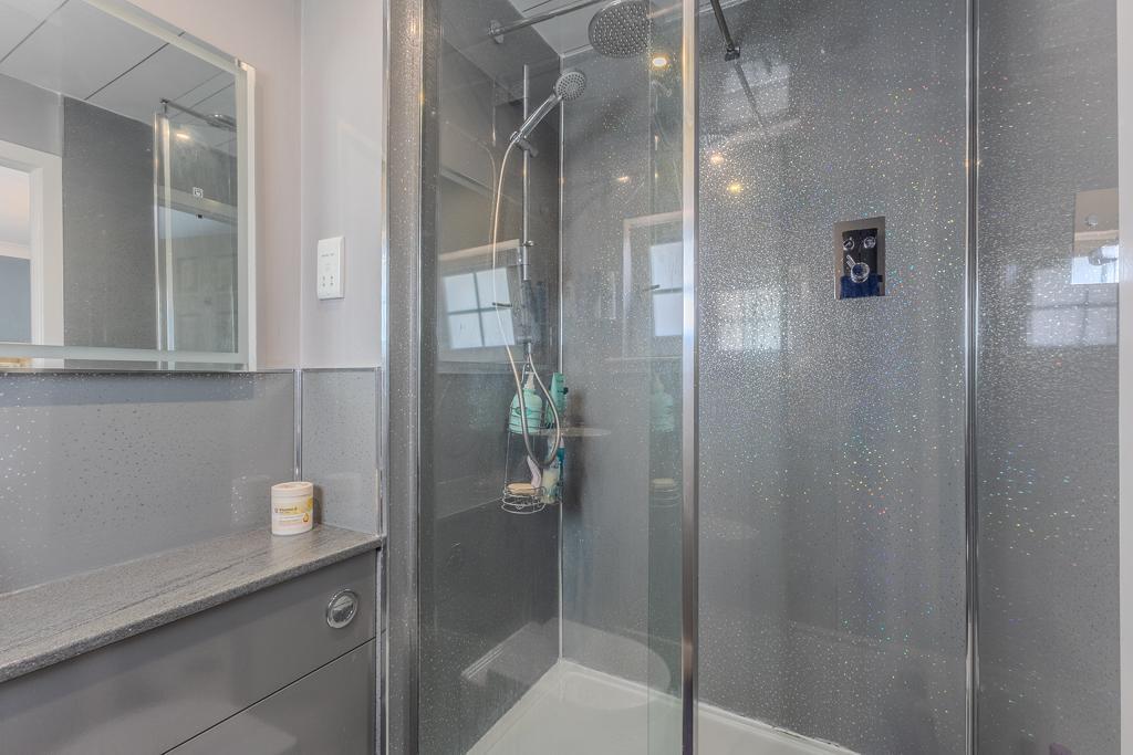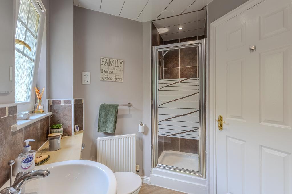 Upstairs, the first floor hosts four well-proportioned bedrooms, each presented with tasteful décor and generous storage. The principal suite is particularly impressive, complete with a modern en suite shower room. A beautifully appointed family bathroom completes the upper level, featuring a four-piece suite including a separate walk-in shower and bath, ideal for busy family routines.