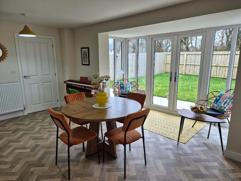 The property is entered via a welcoming hallway, leading to a bright and generously proportioned lounge. To the rear lies a stunning open-plan kitchen and dining area, designed with both everyday living and entertaining in mind, and enjoying direct access to the garden. A separate utility room and WC complete the ground floor.