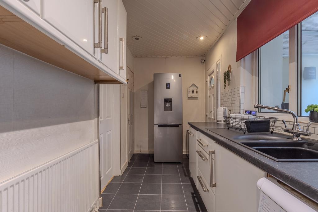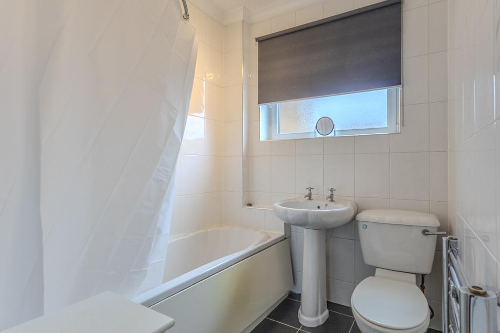 Upstairs, there are two generously sized bedrooms, with the principal bedroom benefitting from a built-in wardrobe offering excellent storage. A well-appointed family bathroom, complete with a three-piece suite and shower over the bath, completes the upper level.