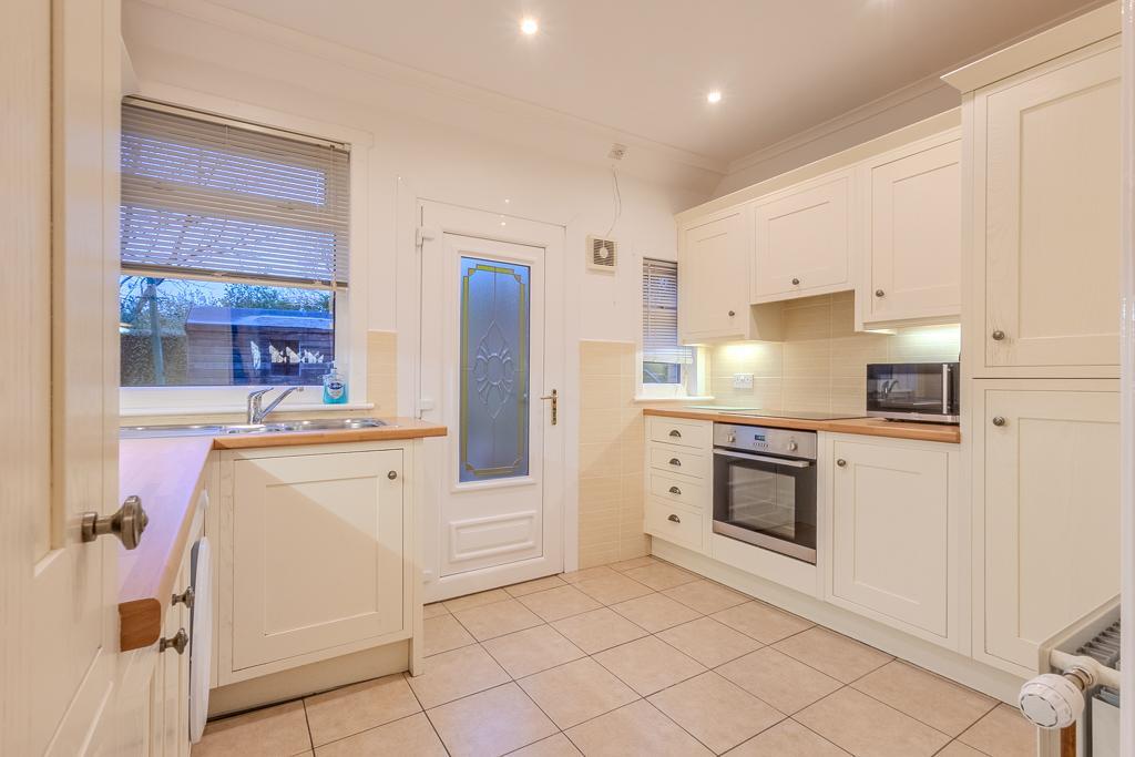 Situated off the lounge is the fully fitted kitchen, which offers a good range of modern units and integrated appliances, along with direct access to the rear garden ideal for everyday convenience and outdoor dining.