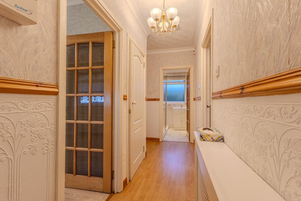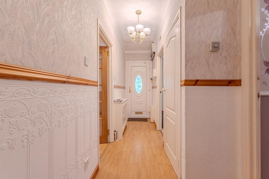 Occupying a desirable elevated position within a quiet and established residential pocket of Robroyston, 26 Olive Street is a well-presented two-bedroom semi-detached bungalow offering bright, well-balanced accommodation on a single level, complemented by generous private garden grounds.