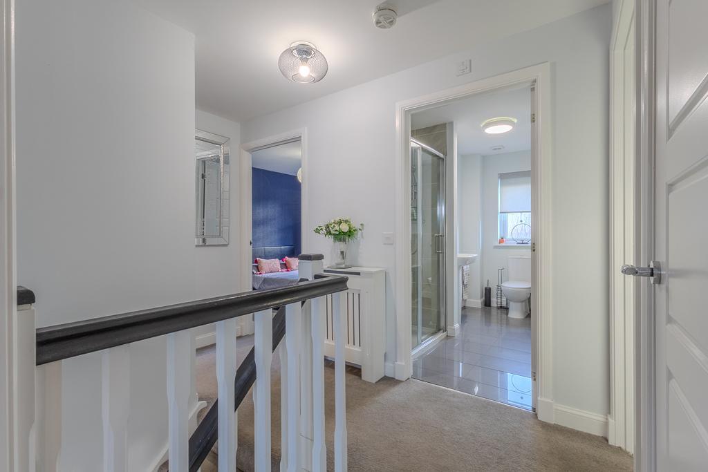 Upstairs, the property continues to impress. There are four well-proportioned bedrooms, each benefiting from built-in wardrobes, providing excellent storage throughout. The principal bedroom enjoys the luxury of its own en suite shower room, while the remaining bedrooms are served by a spacious four-piece family bathroom, featuring both a bath and a separate shower.