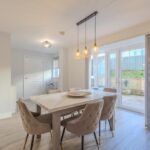 To the rear lies the heart of the home: a stunning open-plan kitchen and dining area, filled with natural light and designed for both everyday living and entertaining. The kitchen is complemented by a separate utility room, offering practical space for laundry and additional appliances. A well-appointed WC completes the ground-floor accommodation.