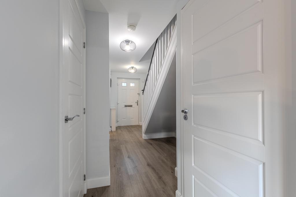A welcoming entrance hallway sets an inviting tone, leading through to the front-facing lounge, a bright and comfortable living space ideal for relaxation. The former garage has been expertly converted to create a versatile family room, complete with a bespoke, handleless storage cupboard a perfect addition for modern family living.