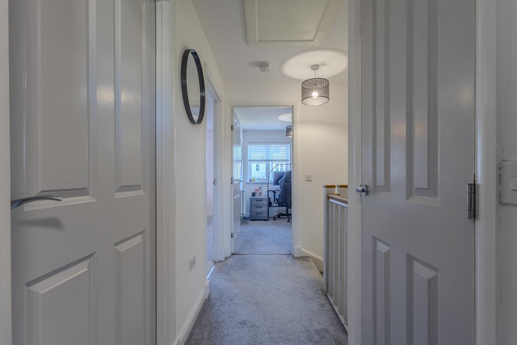 The upper level comprises three well-proportioned bedrooms, offering flexibility for family living, guest accommodation or home working. One of the bedrooms benefits from a stunning en-suite shower room, while the remaining bedrooms are served by a well-appointed family bathroom fitted with a contemporary three-piece suite.