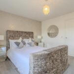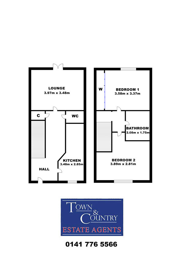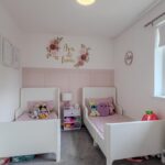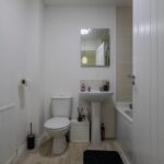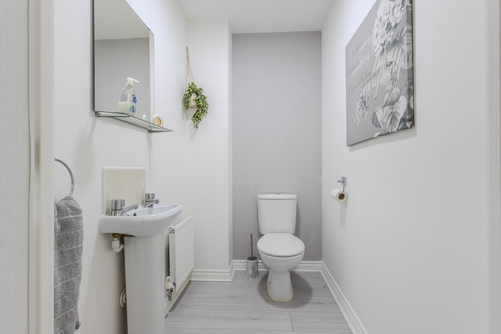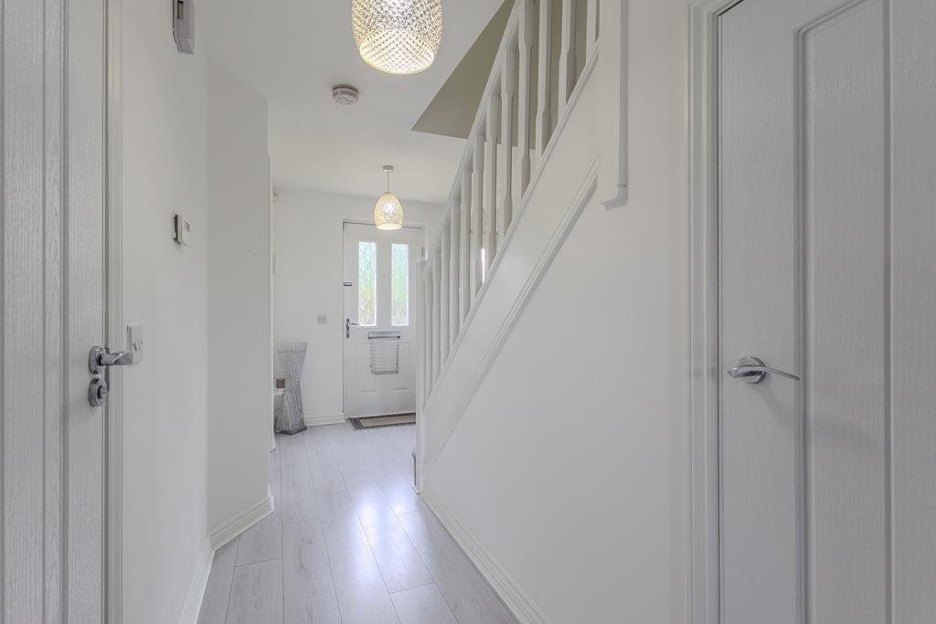 On the first floor there are two well-sized double bedrooms, both benefitting from fitted wardrobes, and a stylish family bathroom with a three-piece white suite.