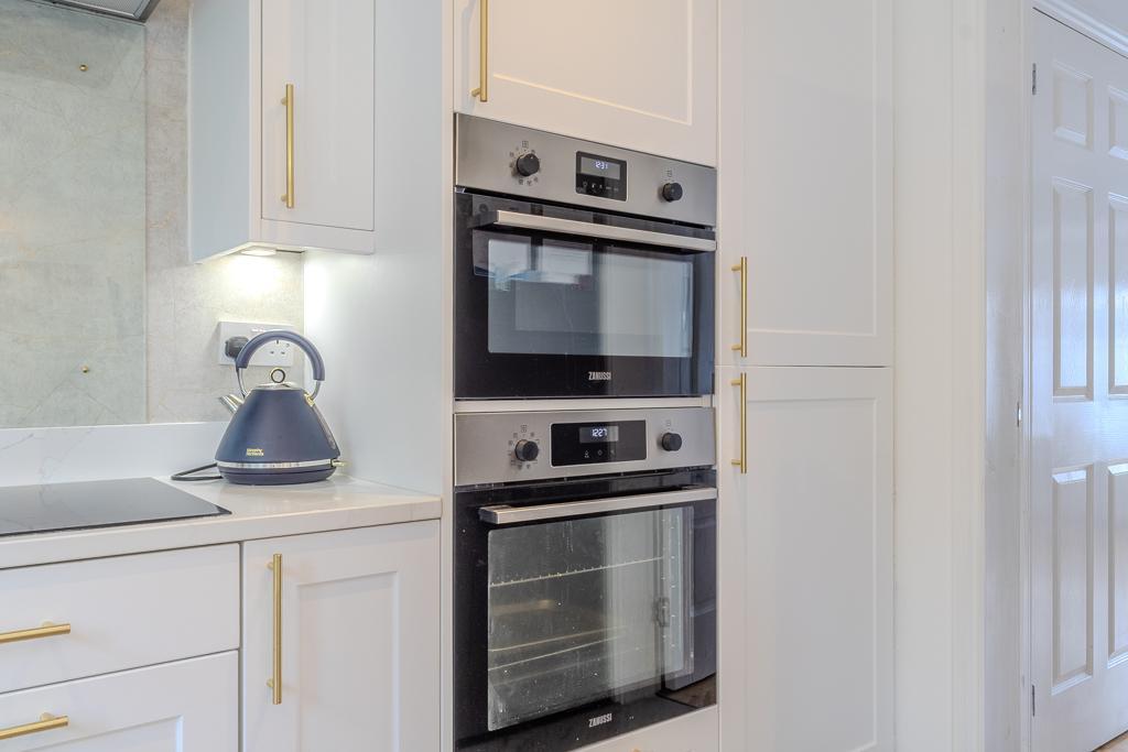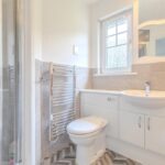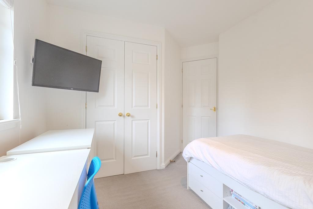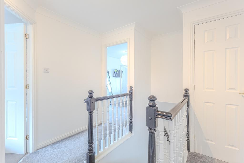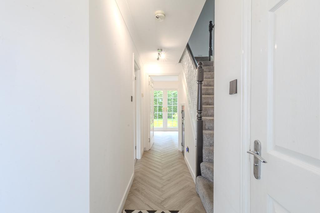 On the upper level, there are four generously sized bedrooms, all benefitting from fitted wardrobes. The principal bedroom features its own en suite shower room, while a stylish main family bathroom serves the remaining bedrooms.