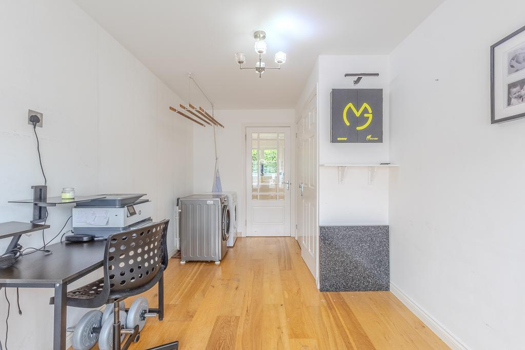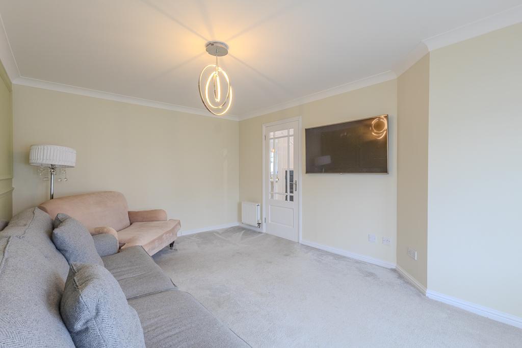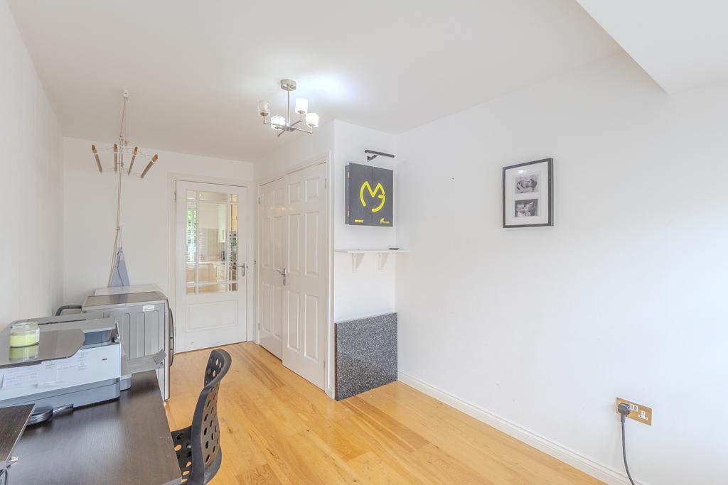 The accommodation is arranged over two levels and comprises a welcoming entrance hallway, a spacious front-facing lounge filled with natural light, a well-appointed kitchen open plan to a casual dining area, a separate formal dining room for more intimate occasions, and a convenient downstairs WC. A standout feature of the property is the professionally converted garage currently used as an additional reception space or home office, offering excellent flexibility for growing families, home workers, or multi-generational needs.