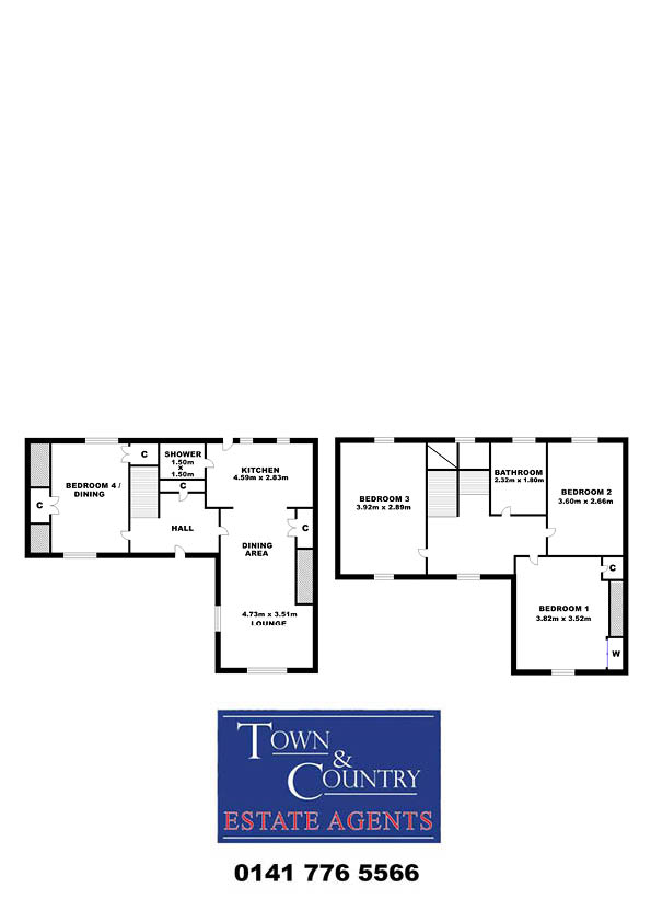A staircase leads to the upper level, where there are three further well-proportioned bedrooms, each offering comfortable accommodation and flexibility for family living.