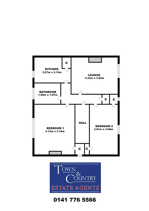 The accommodation comprises a bright and well-proportioned lounge, a modern fitted kitchen with a range of wall and base units, and two good-sized double bedrooms ach benefiting from integrated wardrobe space. A contemporary three-piece bathroom suite completes the internal layout.